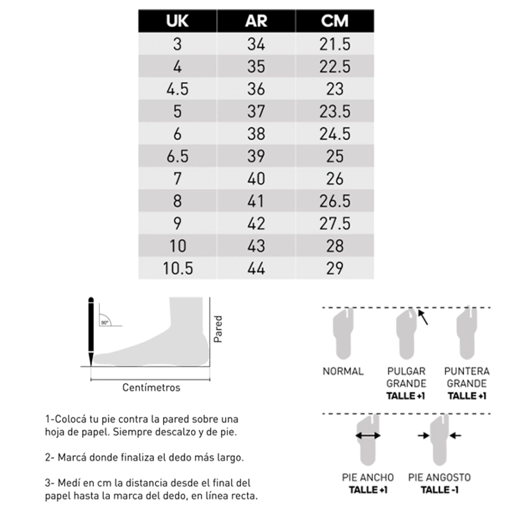 Suela acolchada para una mayor absorción de impacto. Goma de alta resistencia a la abrasión.